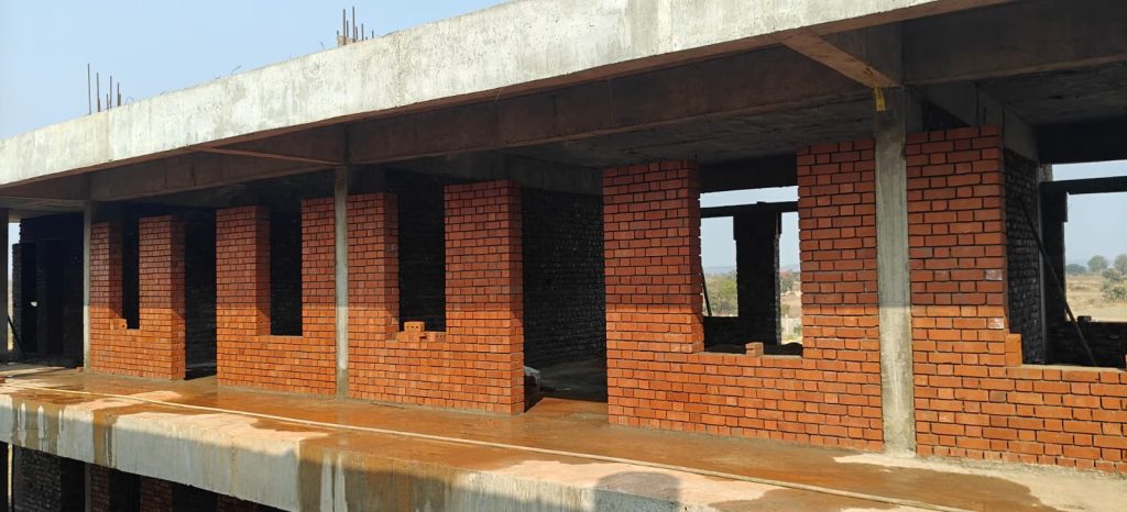 The Academic Block is at the heart of the campus. The ground floor is now close to completion and includes 4 classrooms (two large and two medium-sized). The classrooms are designed to be spacious, well-ventilated, and suitable for a focused learning environment. The first floor will be developed in the next phase, with plans for a library, studio, and additional academic facilities.