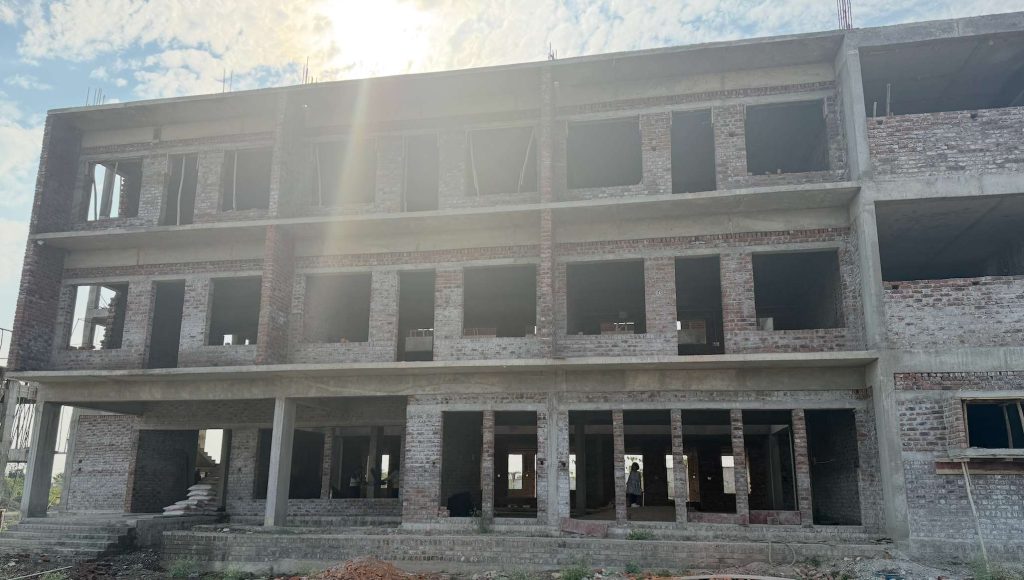The Boys’ Hostel has made strong progress, with all floors structurally ready. It will accommodate around 90 students in the first phase. Each room is designed for shared living with proper study space, ventilation, and essential facilities.